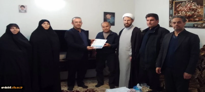 به گزارش روابط‌عمومی دانشگاه فرهنگیان استان اردبیل روز یکشنبه 12 یهمن ماه1404 دکتر محمد عظیمی، سرپرست دانشگاه فرهنگیان استان اردبیل، حجت‌الاسلام‌والمسلمین عبداله حسنی، مسئول نهاد نمایندگی مقام معظم رهبری در دانشگاه، شیرین عالی سرپرست دانشکده علوم تربیتی و جمعی از اساتید و کارکنان دانشگاه فرهنگیان استان اردبیل با حضور در منزل جانباز سرافراز جنگ تحمیلی، رحمن امری، تجدید میثاقی دوباره با آرمان‌های شهدا و ایثارگران داشتند.