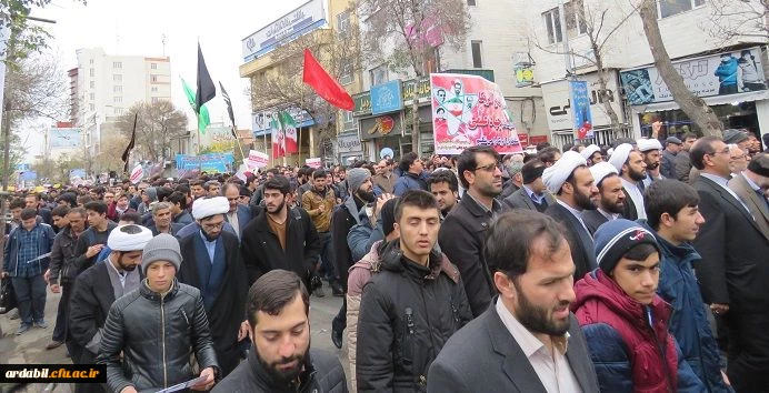 در روز مبارزه با استکبار جهانی صورت گرفت: حضور پرشور مسؤولین، اساتید، کارکنان و دانشجومعلّمان ولایت مدار دانشگاه فرهنگیان استان اردبیل در راهپیمایی یوم الله 13 آبان 3