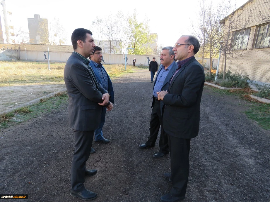 بازدیدآقای دکتر مصلحی مدیر کل محترم طرح، برنامه و بودجه دانشگاه فرهنگیان و هیات همراه از قسمت ها ی ساختمانی، فضای فیزیکی و سالن ورزشی پردیس ها ی علامه طباطبایی و بنت الهدی صدر اردبیل 4