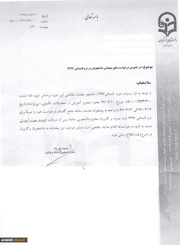 اطلاعیه درخواست میهمانی دانشجویان در ترم تابستانی 1397 2