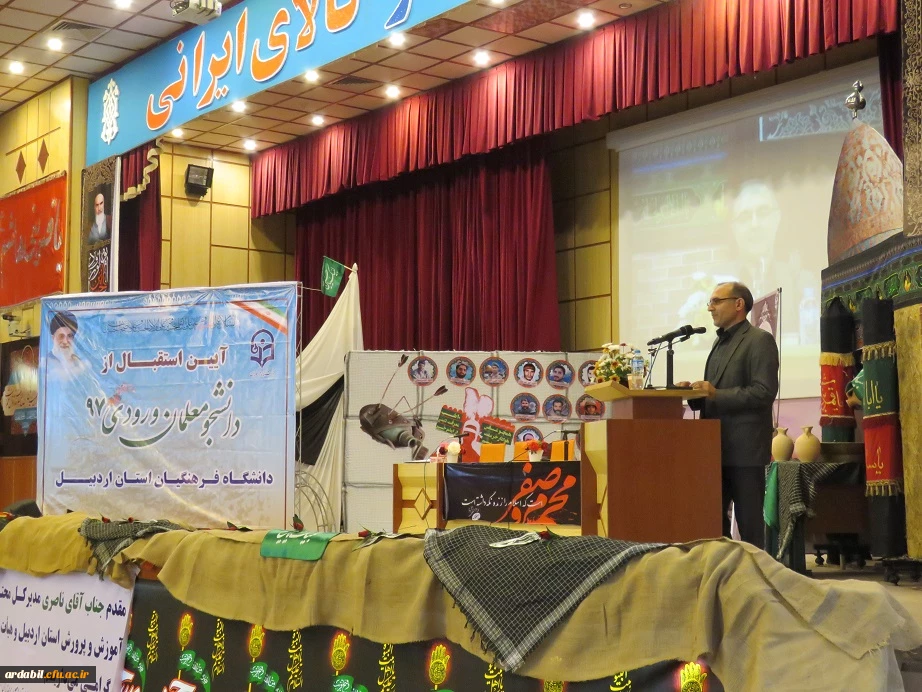 دکتر عبدی در آیین استقبال از نو دانشجومعلمان دانشگاه فرهنگیان اردبیل: حرفۀ معلمی از نظر قرآن و از نظر تمام متفکران تعلیم تربیت شغل ارزشمند و مقدسی است. 3