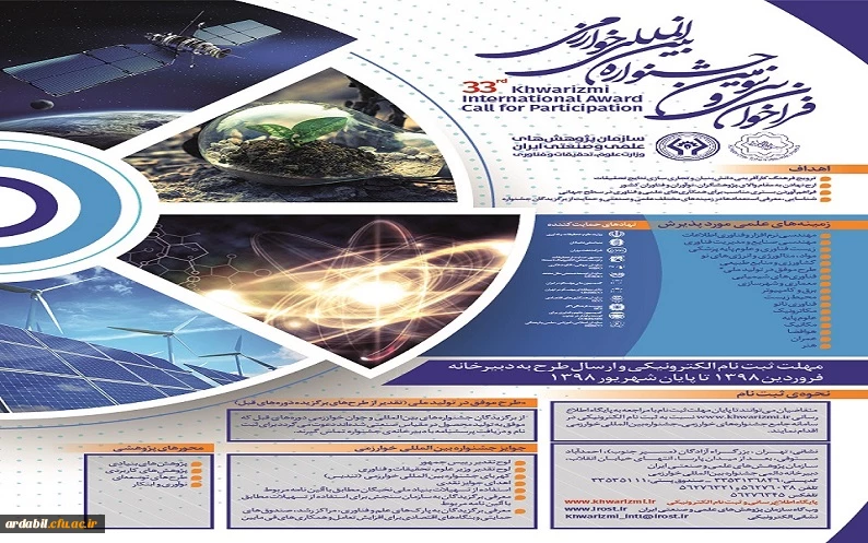 امتیاز دهید : فراخوان بیست و یکمین جشنواره جوان و سی و سومین جشنواره بین المللی خوارزمی 2 یکشنبه 29 اردیبهشت 1398 ساعت 12:43