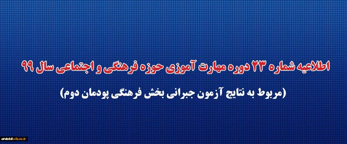 اطلاعیه شماره 23 دوره مهارت آموزی حوزه فرهنگی و اجتماعی سال 99 (مربوط به نتایج آزمون جبرانی بخش فرهنگی پودمان دوم)