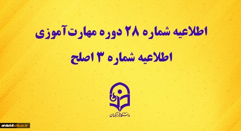 اطلاعیه شماره 28 دوره مهارت آموزی، اطلاعیه شماره 3 اصلح