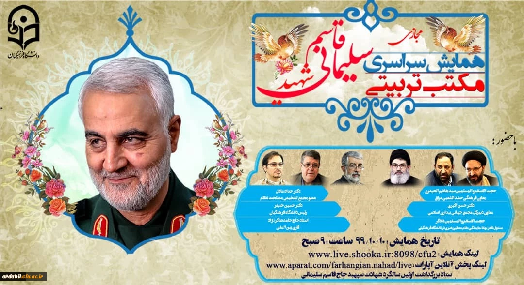 امتیاز دهید : همایش سراسری مجازی مکتب تربیتی سردار شهید حاج قاسم سلیمانی سهشنبه 9 دی 1399 ساعت 10:03