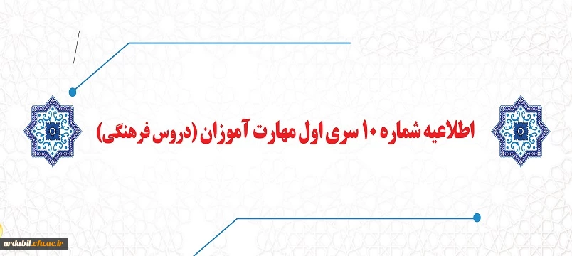 اطلاعیه شماره 10 سری اول مهارت آموزان (دروس فرهنگی)