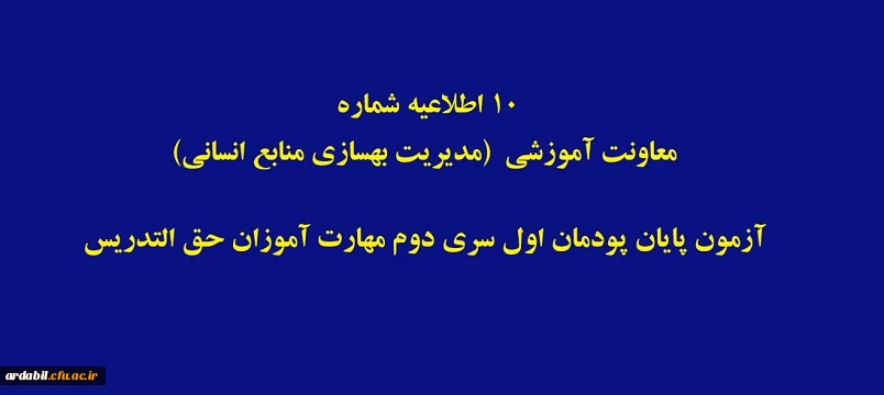 اطلاعیه شماره 10 معاونت آموزشی (مدیریت بهسازی منابع انسانی)آزمون پایان پودمان اول سری دوم مهارت آموزان حق التدریس