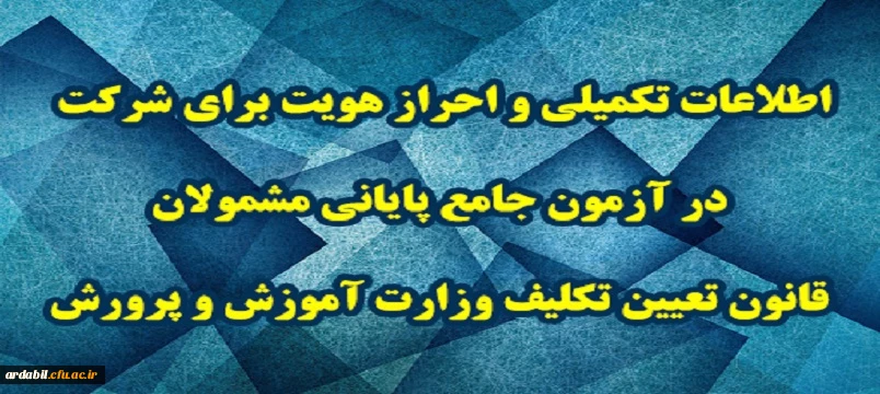اطلاعات تکمیلی و احراز هویت برای شرکت در آزمون جامع پایانی مشمولان قانون تعیین تکلیف وزارت آموزش و پرورش