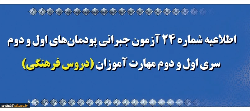 اطلاعیه شماره 24 آزمون جبرانی پودمان های اول و دوم سری اول و دوم مهارت آموزان (دروس فرهنگی)