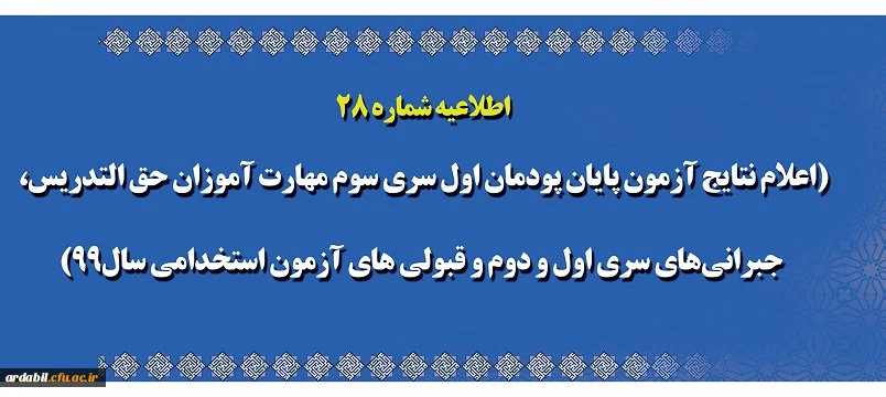 اعلام نتایج آزمون پایان پودمان اول سری سوم مهارت آموزان حق التدریس، جبرانی های سری اول و دوم و قبولی های آزمون استخدامی سال99