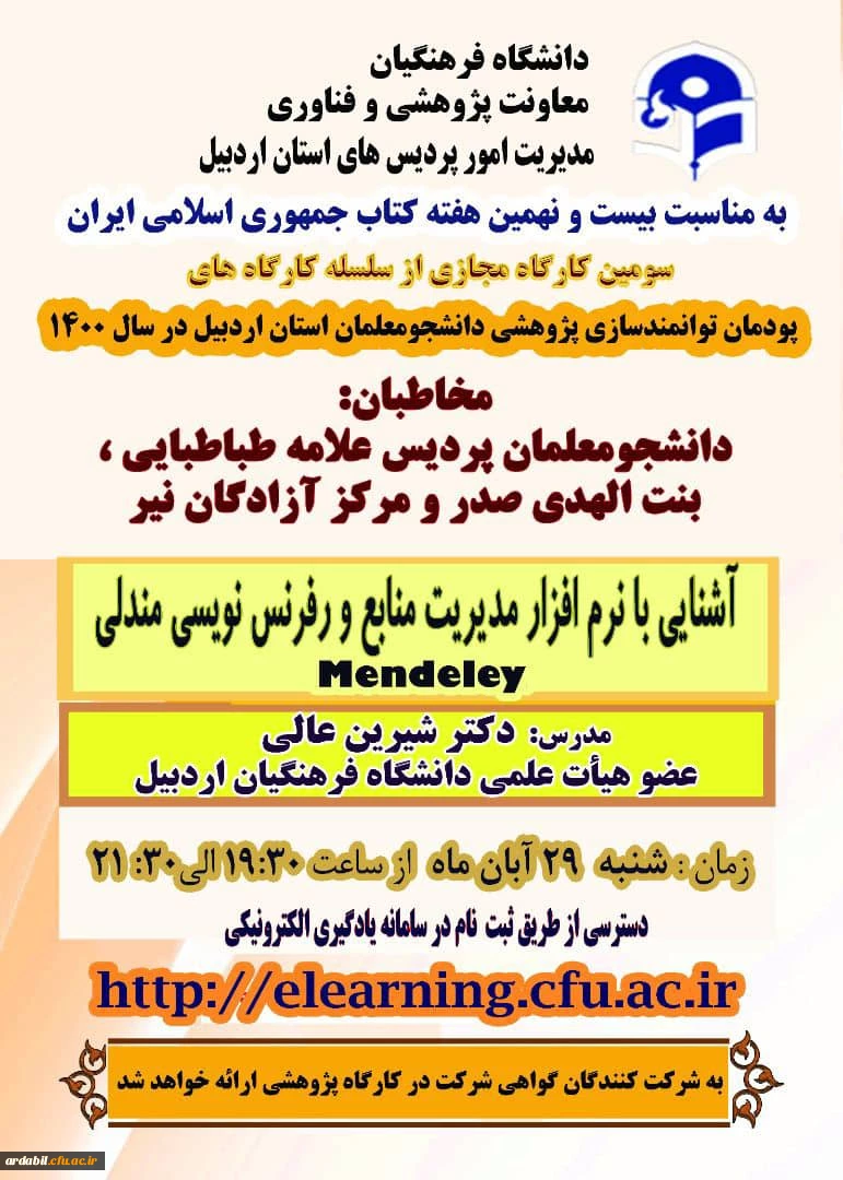امتیاز دهید : برگزاری کارگاه ها و نشست های علمی و تخصصی پژوهشی در دانشگاه فرهنگیان اردبیل 2 سهشنبه 16 آذر 1400 ساعت 17:25