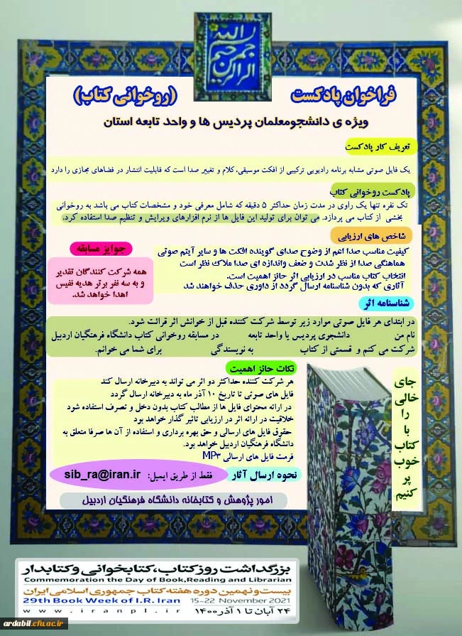 امتیاز دهید : برگزاری کارگاه ها و نشست های علمی و تخصصی پژوهشی در دانشگاه فرهنگیان اردبیل 5 سهشنبه 16 آذر 1400 ساعت 17:25
