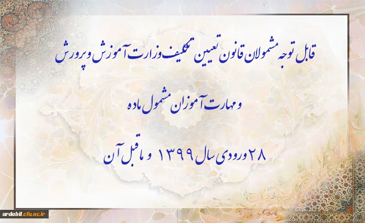 قابل توجه مشمولان قانون تعیین تکلیف وزارت آموزش و پرورش سری سوم و مهارت آموزان مشمول ماده ٢٨ ورودی سال ١٣٩٩ و ماقبل آن