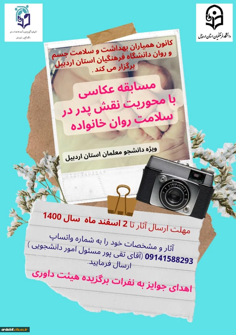 امتیاز دهید : فراخوان مسابقه عکاسی با محوریت نقش پدر در سلامت روان خانواده دوشنبه 25 بهمن 1400 ساعت 11:10