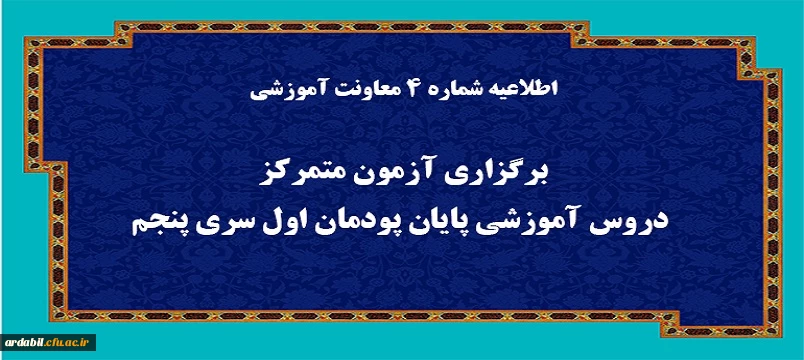 امتیاز دهید : برگزاری آزمون متمرکز دروس آموزشی پایان پودمان اول سری پنجم چهارشنبه 11 اسفند 1400 ساعت 7:58