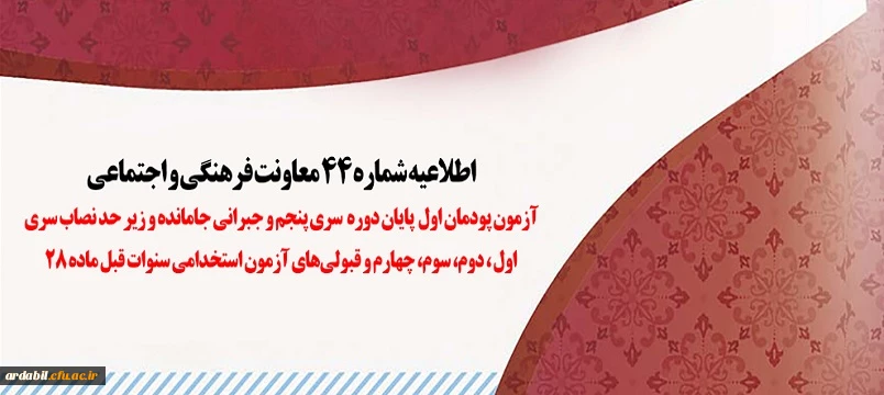 آزمون پودمان اول پایان دوره سری پنجم و جبرانی جامانده و زیر حد نصاب سری اول، دوم، سوم، چهارم و قبولی های آزمون استخدامی سنوات قبل ماده 28