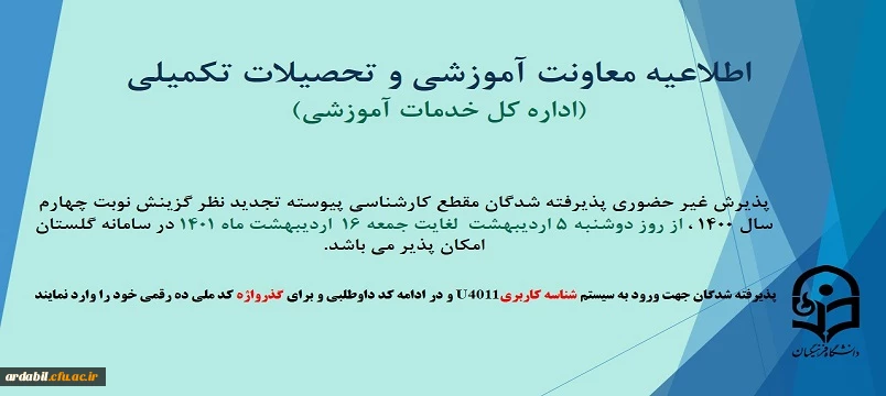 اطلاعیه پذیرش غیر حضوری پذیرفته شدگان مقطع کارشناسی پیوسته تجدید نظر گزینش نوبت چهارم اسفند 1400