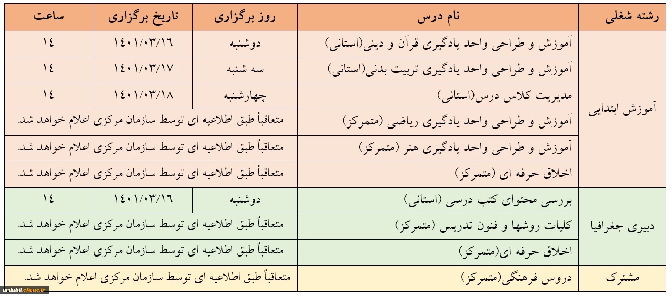 برنامه امتحانات پودمان دوم مهارت آموزان «سری پنجم»