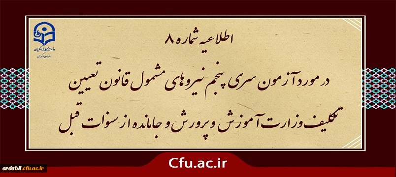 امتیاز دهید : اطلاعیه شماره 8 (برگزاری آزمون جامع بصورت حضوری - الکترونیکی ) جمعه 13 خرداد 1401 ساعت 13:28