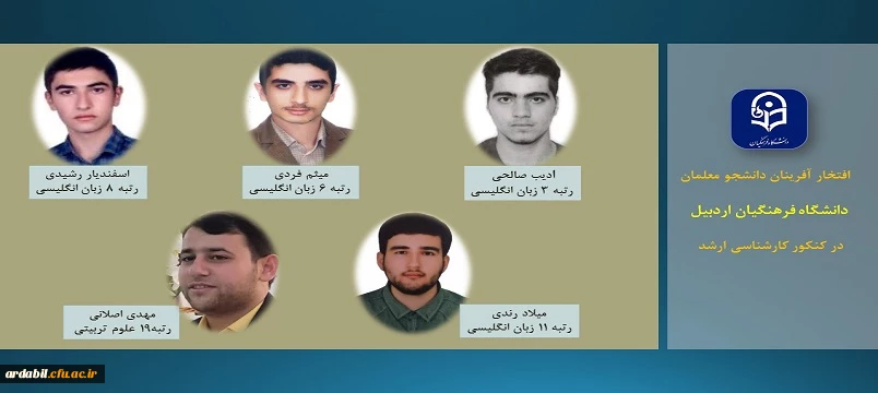 افتخارآفرینی دانشجو معلمان دانشگاه فرهنگیان استان اردبیل در کسب رتبه های برتر کنکور کارشناسی ارشد