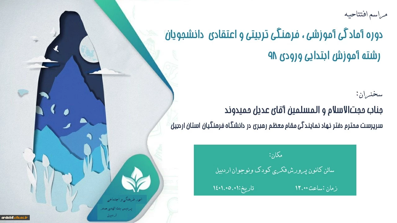 دوره آمادگی آموزشی ، فرهنگی تربیتی و اعتقادی دانشجویان رشته آموزش ابتدایی ورودی 98 "