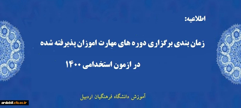 زمان بندی برگزاری دوره مهارت آموزان پذیرفته شده در آزمون استخدامی 1400 دانشگاه فرهنگیان اردبیل