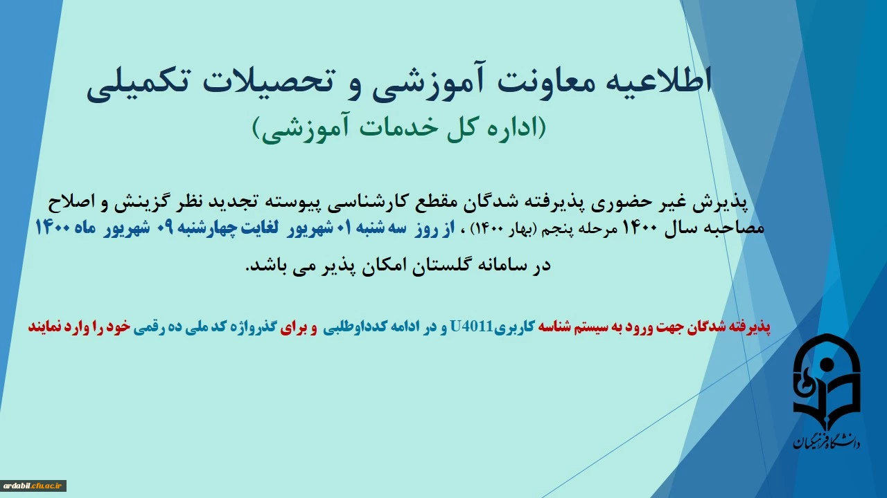 اطلاعیه پذیرش غیر حضوری پذیرفته شدگان مقطع کارشناسی پیوسته تجدید نظر گزینش نوبت پنجم سال1400