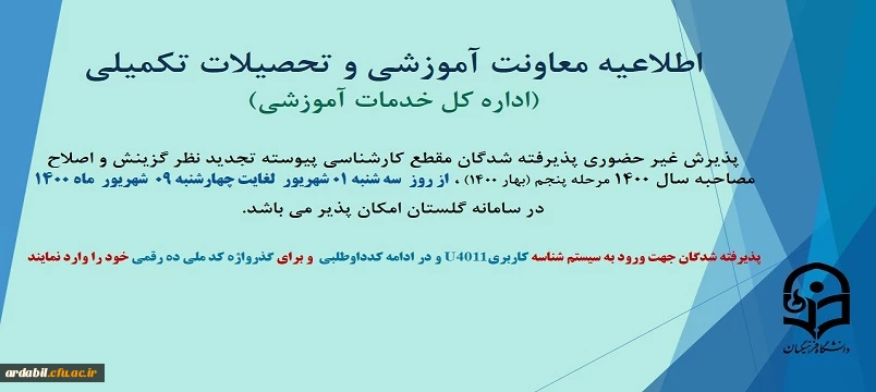 اطلاعیه پذیرش غیر حضوری پذیرفته شدگان مقطع کارشناسی پیوسته تجدید نظر گزینش نوبت پنجم سال1400