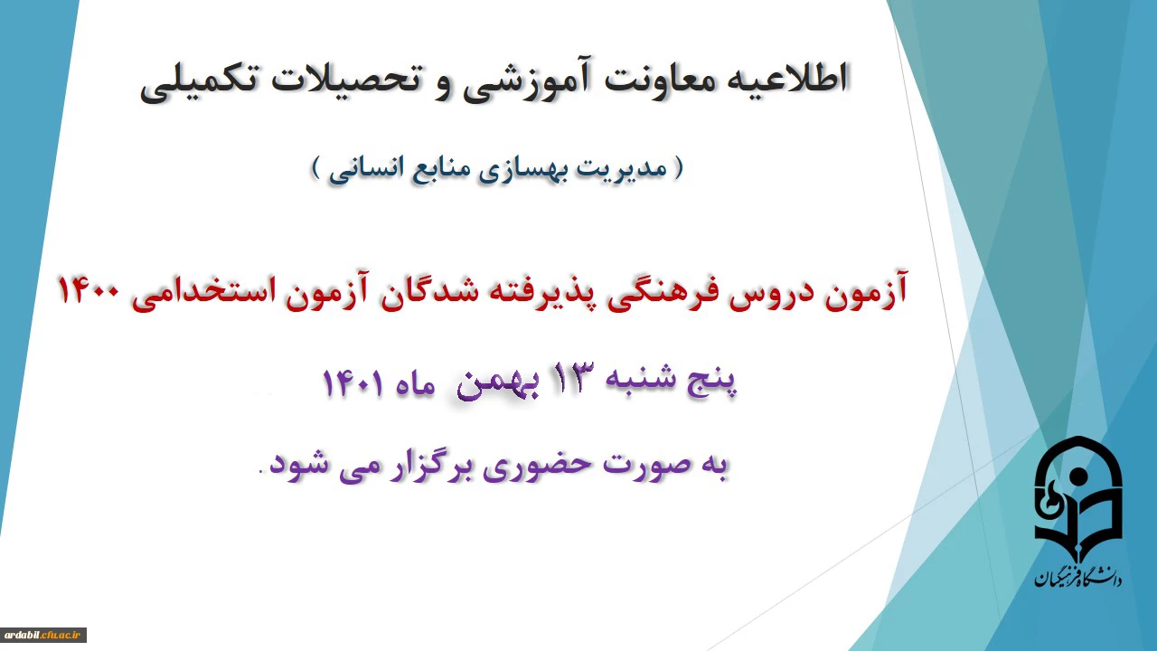امتیاز دهید : برگزاری آزمون دروس فرهنگی پذیرفته شدگان آزمون استخدامی سال 1400 یکشنبه 9 بهمن 1401 ساعت 15:25