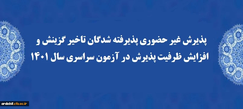 پذیرش غیر حضوری پذیرفته شدگان تاخیر گزینش و افزایش ظرفیت پذیرش در آزمون سراسری سال 1401