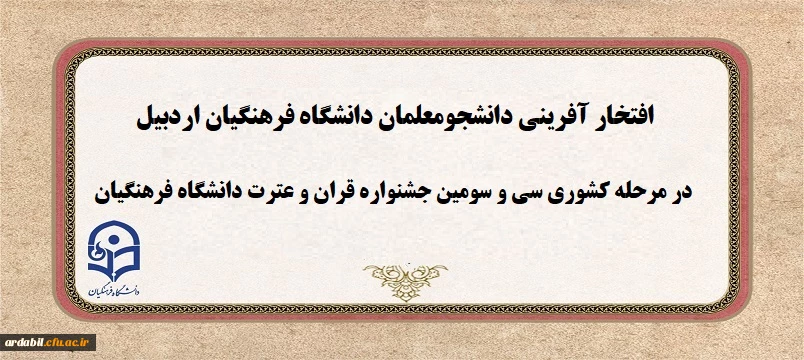 امتیاز دهید : افتخارآفرینی دانشجومعلمان در سی و سومین جشنواره کشوری قران و عترت یکشنبه 31 اردیبهشت 1402 ساعت 13:24