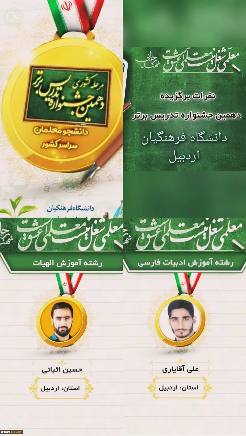 افتخارآفرینی دانشجومعلمان دانشگاه فرهنگیان اردبیل در جشنواره الگوهای برتر تدریس