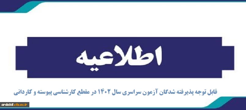 قابل توجه پذیرفته شدگان آزمون سراسری سال 1402 در مقطع کارشناسی پیوسته و کاردانی