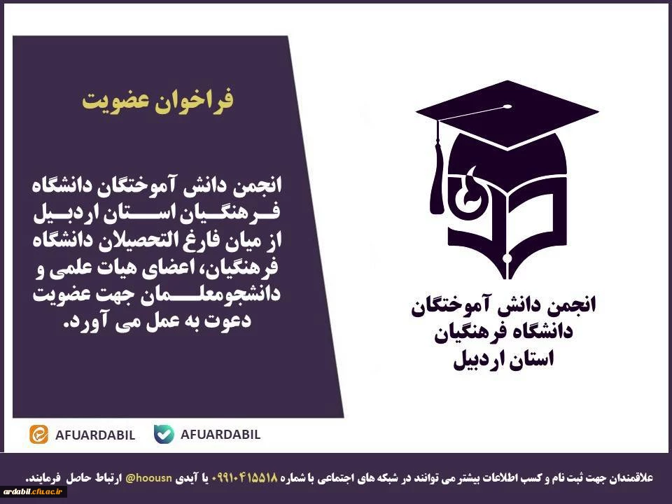 امتیاز دهید : فراخوان عضویت در انجمن دانش آموختگان دانشگاه فرهنگیان استان اردبیل سهشنبه 16 آبان 1402 ساعت 18:33