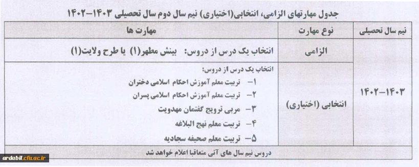 هارت های ذیل نظام جامع فرهنگی و تربیتی (صلاحیت حرفه ای معلمی) - نیمسال اول 1402-1403