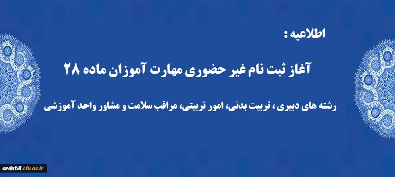 آغاز ثبت نام غیر حضوری مهارت آموزان ماده 28 رشته های دبیری ، تربیت بدنی، امور تربیتی، مراقب سلامت و مشاور واحد آموزشی