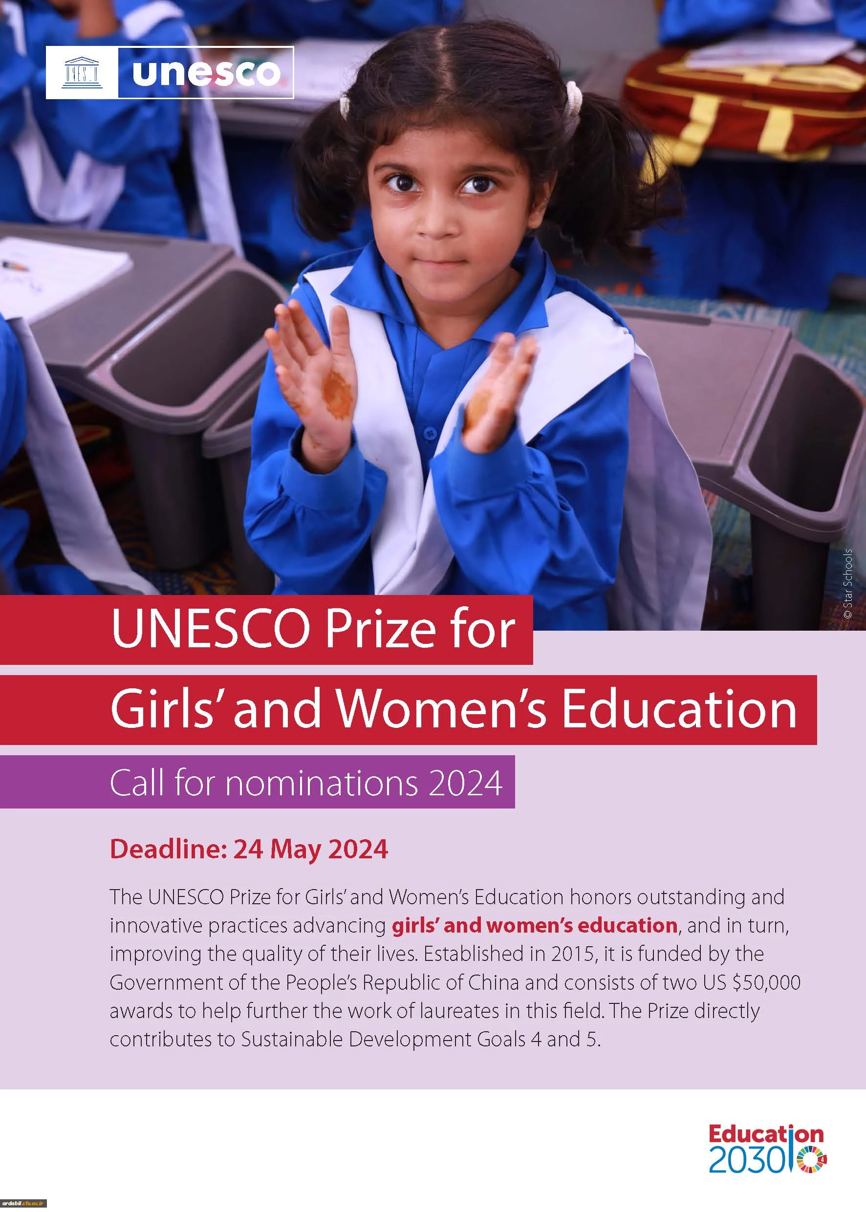 فراخوان جایزه یونسکو برای آموزش بانوان