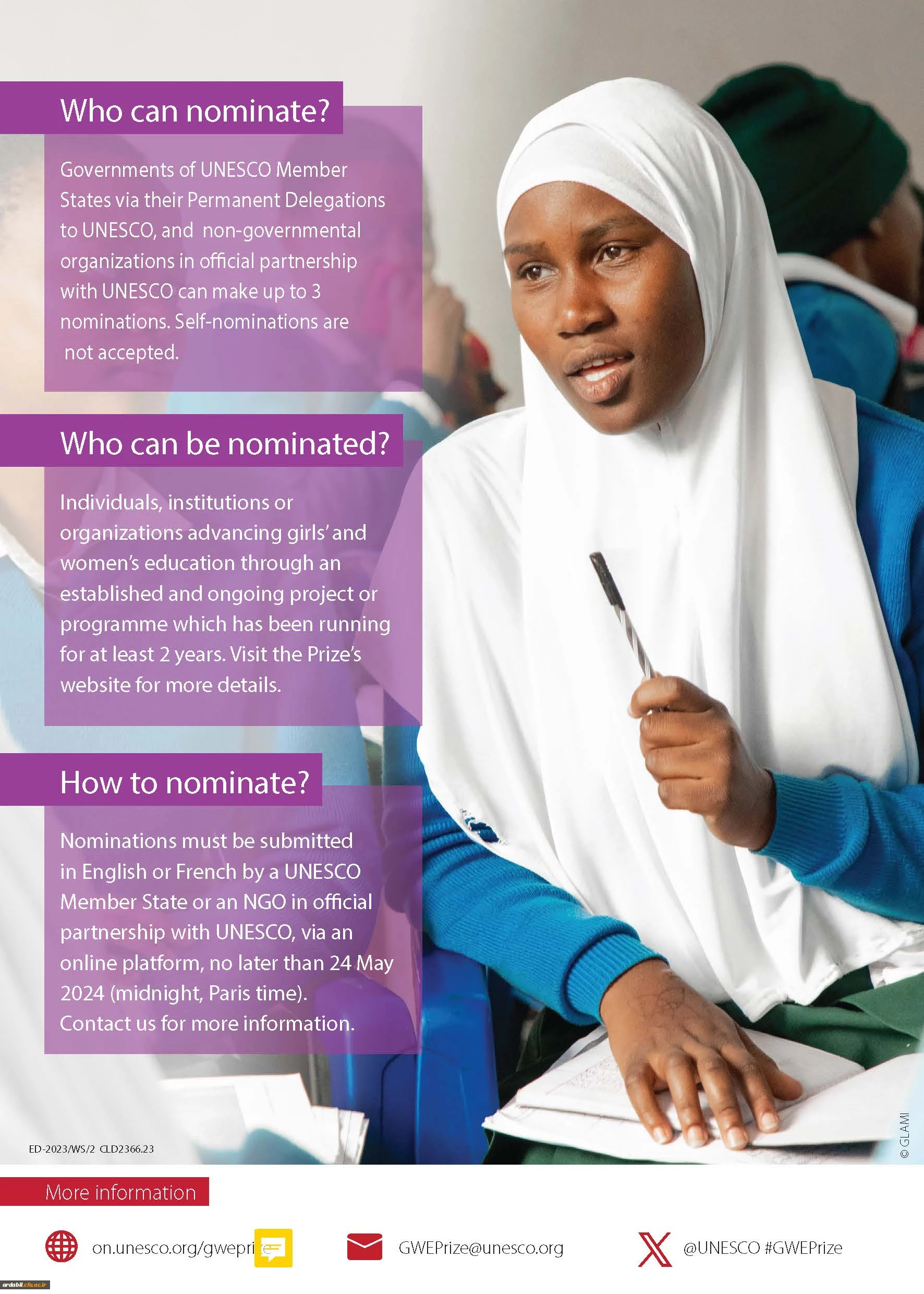 فراخوان جایزه یونسکو برای آموزش بانوان
