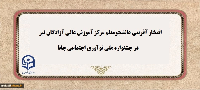 افتخار آفرینی دانشجومعلم مرکز آموزش عالی آزادگان نیر در جشنواره ملی نوآوری اجتماعی جانا