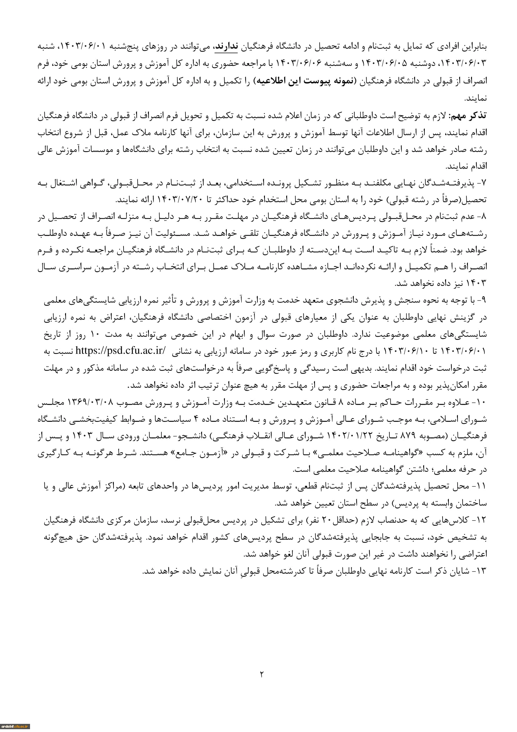 اعلام نتایج پذیرفته شدگان نهایی آزمون اختصاصی پذیرش دانشجومعلم دانشگاه فرهنگیان در آزمون سراسری سال ۱۴۰۳