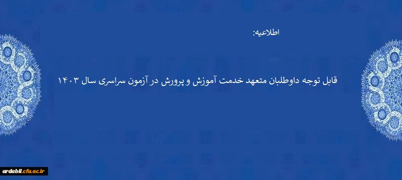 امتیاز دهید : قابل توجه داوطلبان متعهد خدمت آموزش و پرورش در آزمون سراسری سال ۱۴۰۳ شنبه 10 شهریور 1403 ساعت 18:13