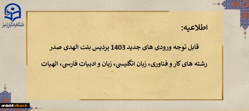 امتیاز دهید : قابل توجه ورودی های جدید 1403 پردیس بنت الهدی صدر اردبیل چهارشنبه 18 مهر 1403 ساعت 14:40