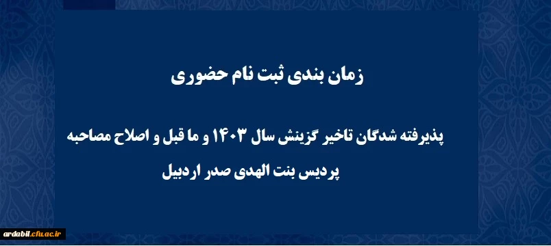 پذیرش حضوری از پذیرفته شدگان تاخیر گزینش سال 1403 و ما قبل و اصلاح مصاحبه پردیس بنت الهدی صدر