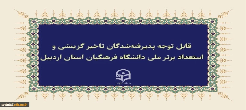 زمان بندی ثبت نام حضوری پذیرفته شدگان تاخیر گزینشی و استعداد برتر ملی دانشگاه فرهنگیان استان اردبیل